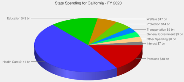 California’s state budget is around $208 billion for 2019 – 2020. About $80 billion is spent on radical left-wing indoctrination centers known as “public schools” (although not all of this is state-level spending, some of it is local).