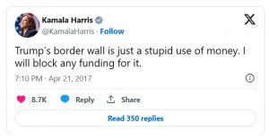 Recently, at the Democrat National Convention, Kommie Harris claimed she will sign a border security bill to continue building Trump’s border wall. Wait, what? Harris helped SHUT DOWN the U.S. government when she argued about how stupid the wall strategy was in 2019, but then most Democrats can’t remember what they stood for yesterday, so there’s that.